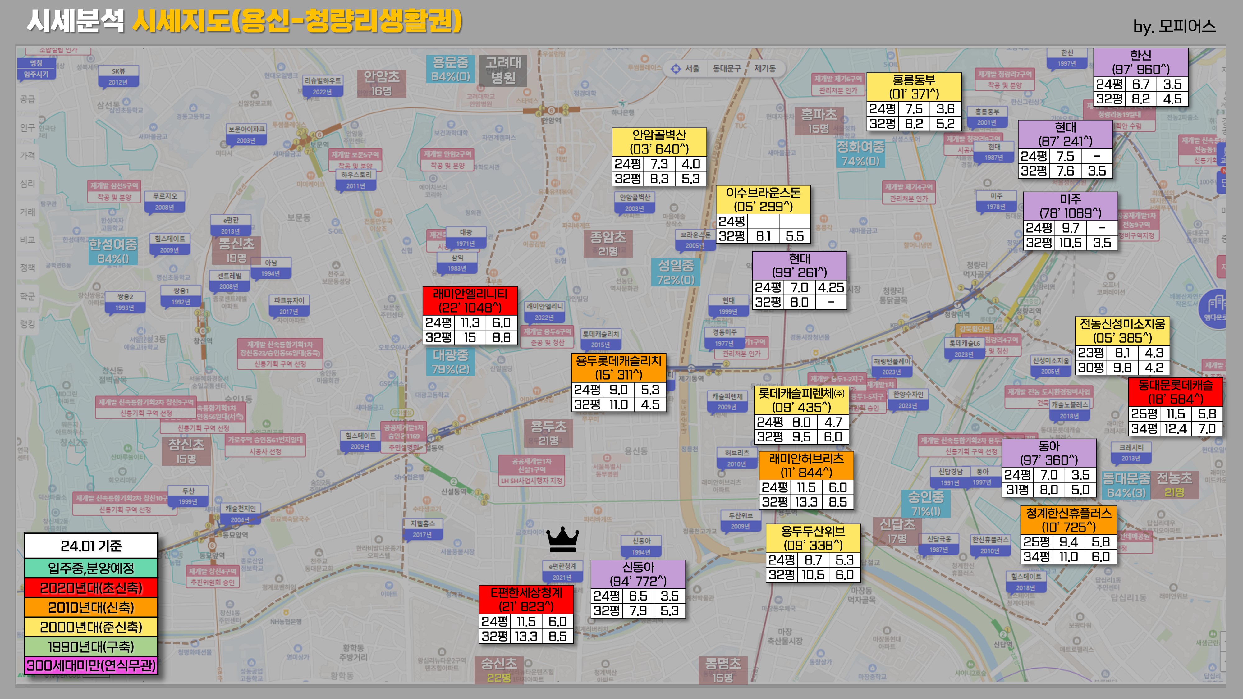 -왕관모양: 그 생활권의 대장아파트를 표시하였습니다.