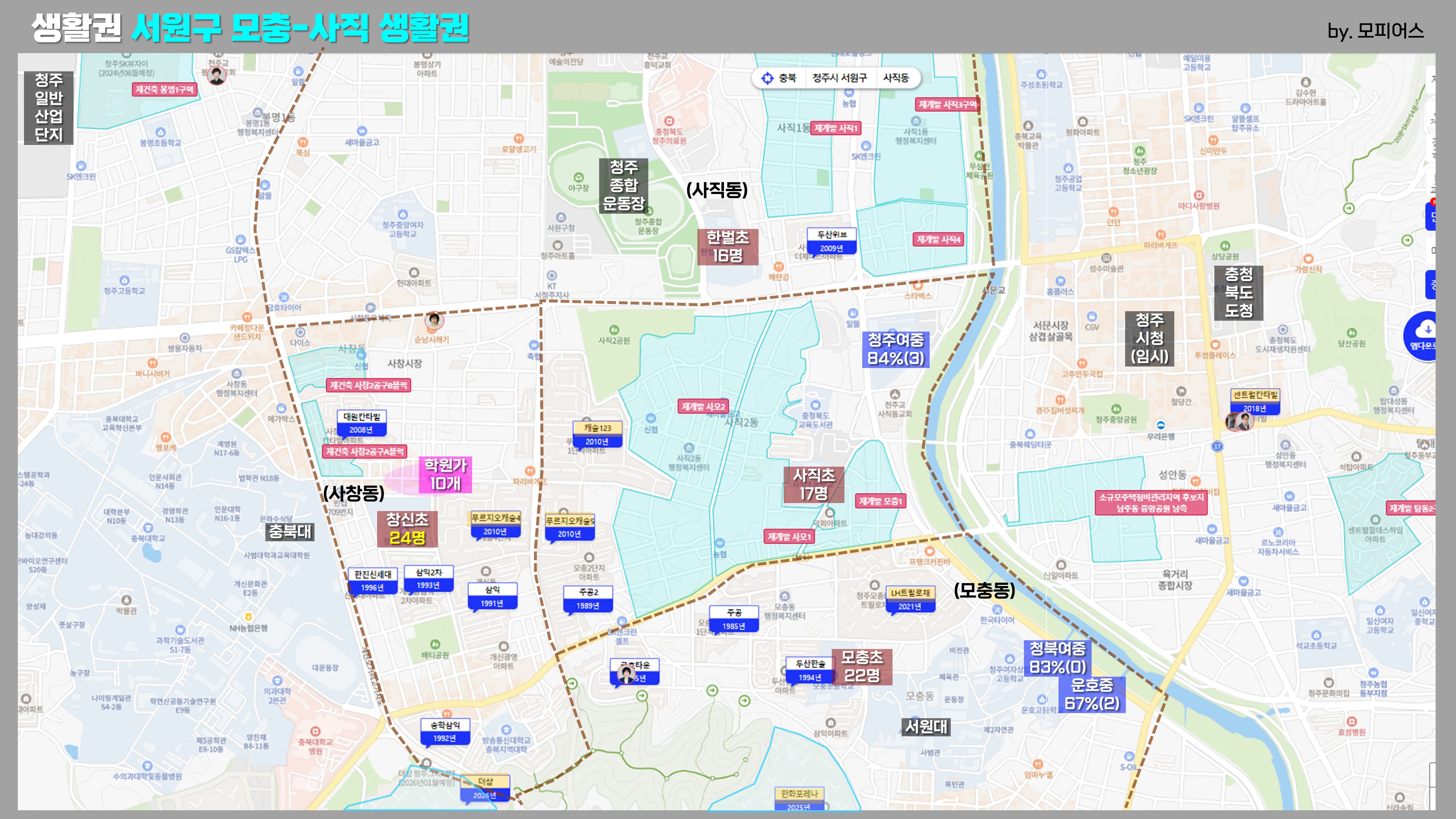 - 갈색박스: 초등학교 배정 범위를 갈색 점선으로 나타내였으며, 초등학교 학급당인원도 넣었습니다.
