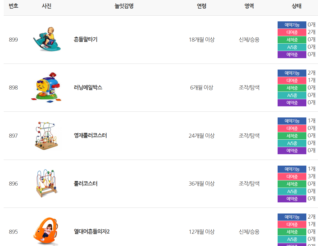 - 센터마다 인기 장난감은 대기자가 많을 수 있으니